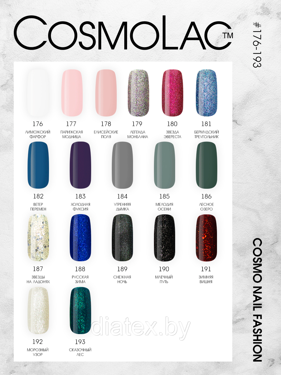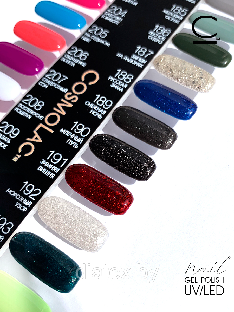 Каждый цвет нашей коллекции подбирается с душой и создается под особым контролем. Наши лаки не «капризные» в нанесении и не требуют высоких навыков в работе, обладают высокой пигментацией и эластичной текстурой. Легко перемешиваются между собой, что позволит при желании самостоятельно создать новые и градиенты. Сушить 30/120 сек в led/uv лампе. Рекомендации: Лаки с темными пигментами рекомендуем наносить тонким слоем и не прерывать указанное время полимеризации. Насладитесь высоким качеством и широким выбором наших цветных покрытий.Характеристики